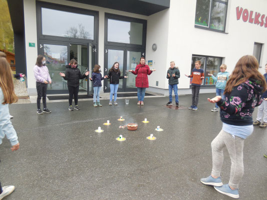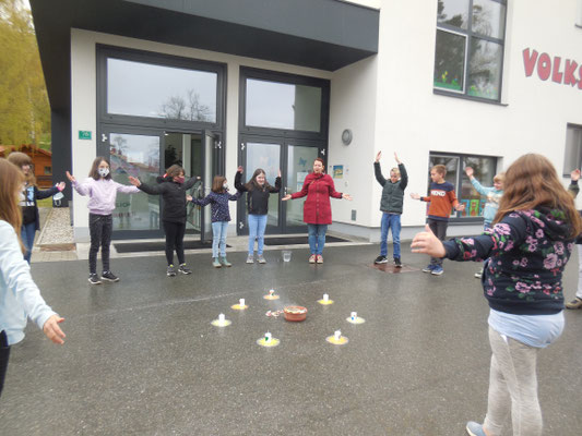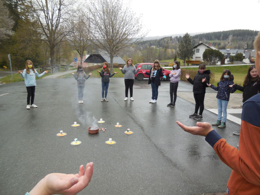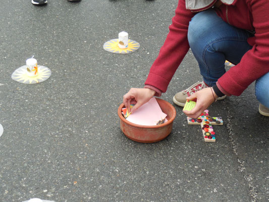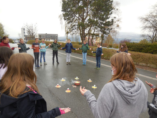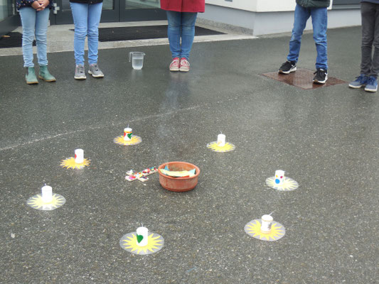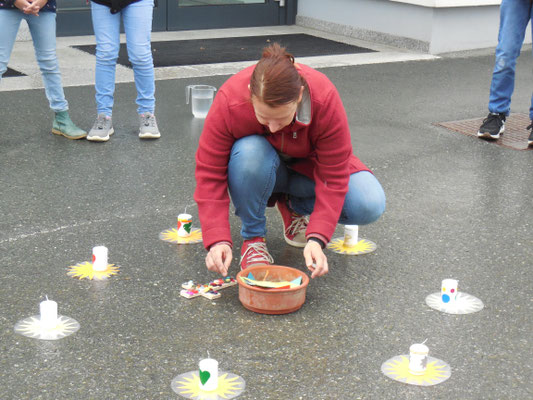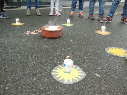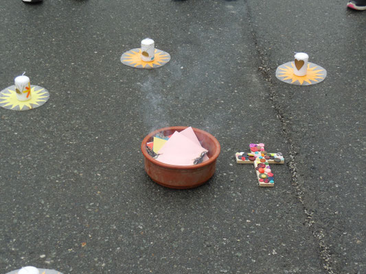 Im Klassenverband feierten die Schulkinder ein Versöhnungsfest. Die Kinder hielten auf Zetteln fest, was ihnen leidtut und was sie belastet. In einer gemeinsamen kleinen Feier wurden alle Zettel verbrannt. Die Erstkommunionkinder gestalteten Versöhnungskerzen, die dabei auch entzündet wurden.